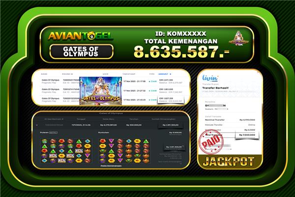 BUKTI PEMBAYARAN SLOT AVIANTOGEL Rp.8,635,587,- GAME : SLOT GATES OF OLYMPUS
