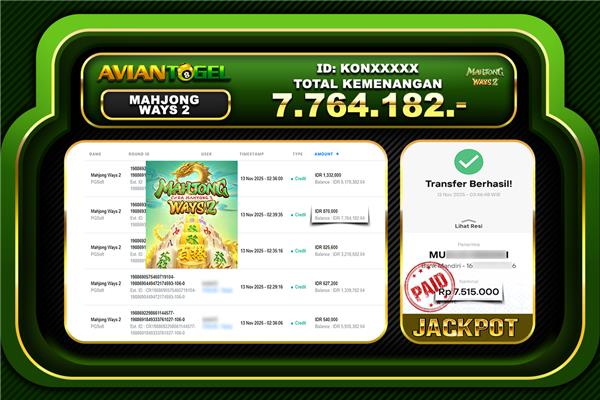 BUKTI PEMBAYARAN SLOT AVIANTOGEL Rp.7,764,182,- GAME : SLOT MAHJONG WAYS 2