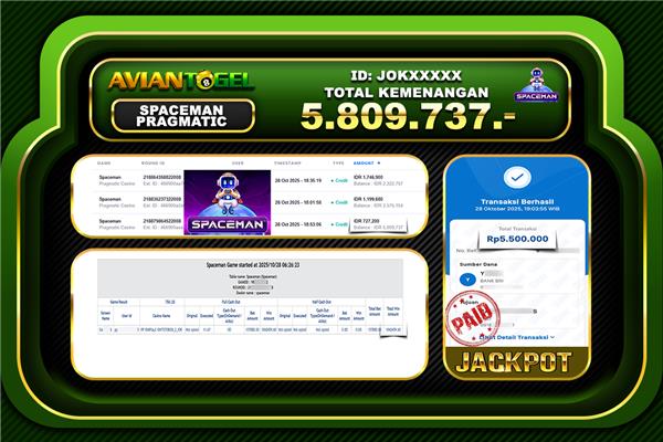 BUKTI PEMBAYARAN SLOT AVIANTOGEL Rp.5,809,737,- GAME : SLOT SPACEMAN PRAGMATIC
