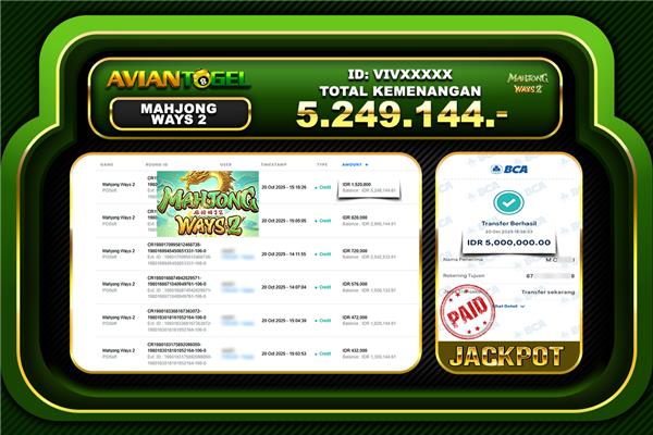 BUKTI PEMBAYARAN SLOT AVIANTOGEL Rp.5,249,144,- GAME : SLOT MAHJONG WAYS 2