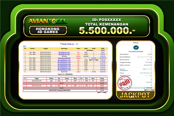 BUKTI PEMBAYARAN AVIANTOGEL Rp.5,500,000,- GAME : TOGEL HONGKONG 4D GAMES