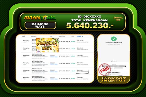 BUKTI PEMBAYARAN SLOT AVIANTOGEL Rp.5,640,230,- GAME : SLOT MAHJONG WAYS