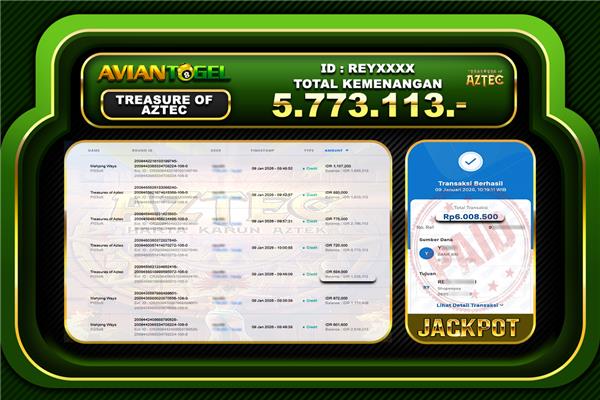 BUKTI PEMBAYARAN SLOT AVIANTOGEL Rp.5,773,113,- GAME : SLOT THREASURE OF AZTEC