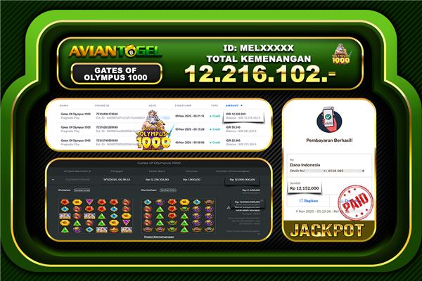 BUKTI PEMBAYARAN SLOT AVIANTOGEL Rp.12,216,102,- GAME : GATES OF OLYMPUS 1000
