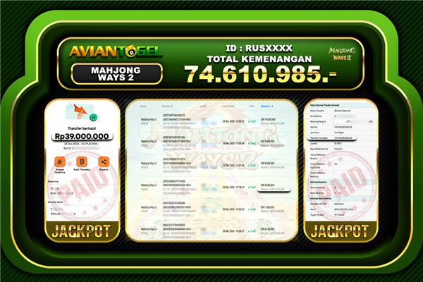 BUKTI PEMBAYARAN SLOT AVIANTOGEL Rp.74,610,985,- GAME : SLOT MAHJONG WAYS 2