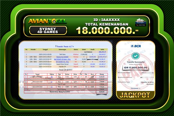 BUKTI PEMBAYARAN SLOT AVIANTOGEL Rp.11,800,000,- GAME : TOGEL SYDNEY 4D GAMES (USER ID : IAAXXXXX ) TANGGAL |26-02-2026| CASH LUNAS !