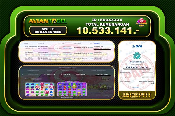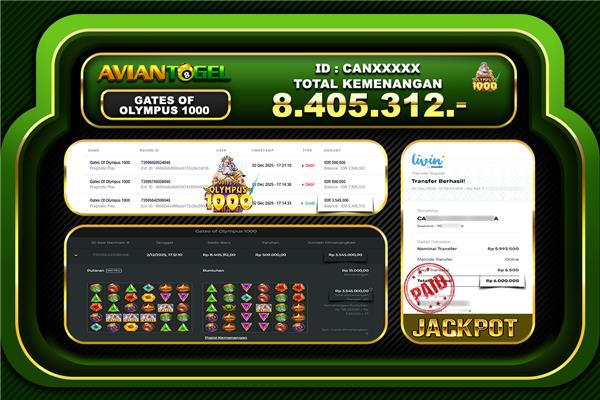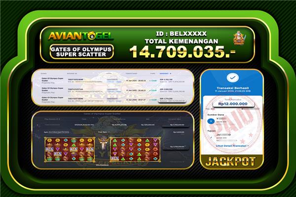 Beberapa situs togel online hanya menjanjikan tanpa ada bukti yang jelas, tapi di AVIANTOGEL semua pasti terbukti dan jelas, BUKTI JACKPOT TOTO TOGEL ONLINE, SLOT ONLINE, LIVE CASINO secara nyata. Melalui kemenangan member setiap hari nya, jackpot besar togel online 2D–3D–4D maupun jackpot besar slot gacor, hingga bukti transaksi kemenangan yang benar-benar masuk ke saldo member.