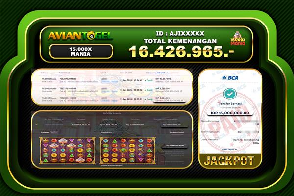 BUKTI PEMBAYARAN SLOT AVIANTOGEL Rp.16,426,965,- GAME : 15.000 X MANIA (USER ID : AJIXXXXX ) TANGGAL |27-02-2026| CASH LUNAS !