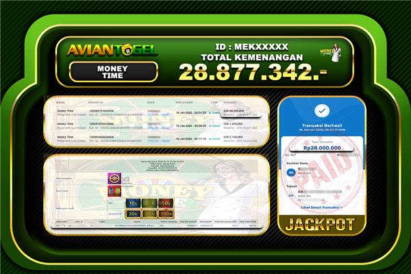 BUKTI PEMBAYARAN SLOT AVIANTOGEL Rp.28,877,342,- GAME : MONEY TIME (USER ID : MEKXXXXX ) TANGGAL |27-02-2026| CASH LUNAS !