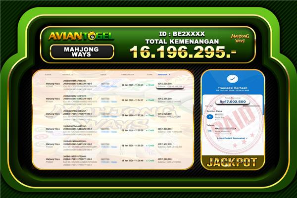BUKTI PEMBAYARAN SLOT AVIANTOGEL Rp.23,751,389,- GAME : MAHJONG WAYS (USER ID : BE2XXXX ) TANGGAL |25-02-2026| CASH LUNAS !