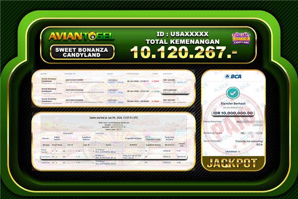 BUKTI PEMBAYARAN SLOT AVIANTOGEL Rp.10,120,267,- GAME : SWEET BONANZA CANDYLAND (USER ID : USAXXXXX ) TANGGAL |25-02-2026| CASH LUNAS !