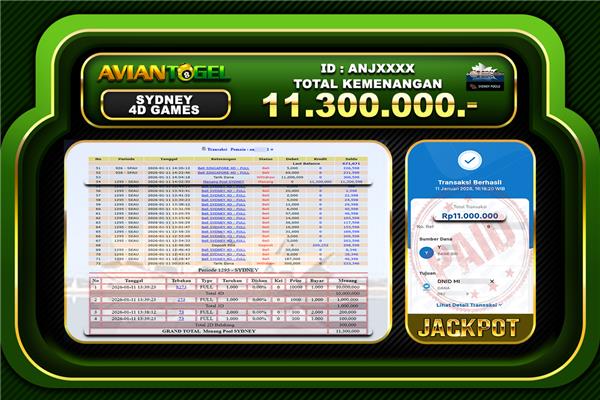 BUKTI PEMBAYARAN SYDNEY LOTTO AVIANTOGEL Rp.11,300,000,- SYDNEY LOTTO (USER ID : ANJXXXX ) TANGGAL |25-02-2026| CASH LUNAS !