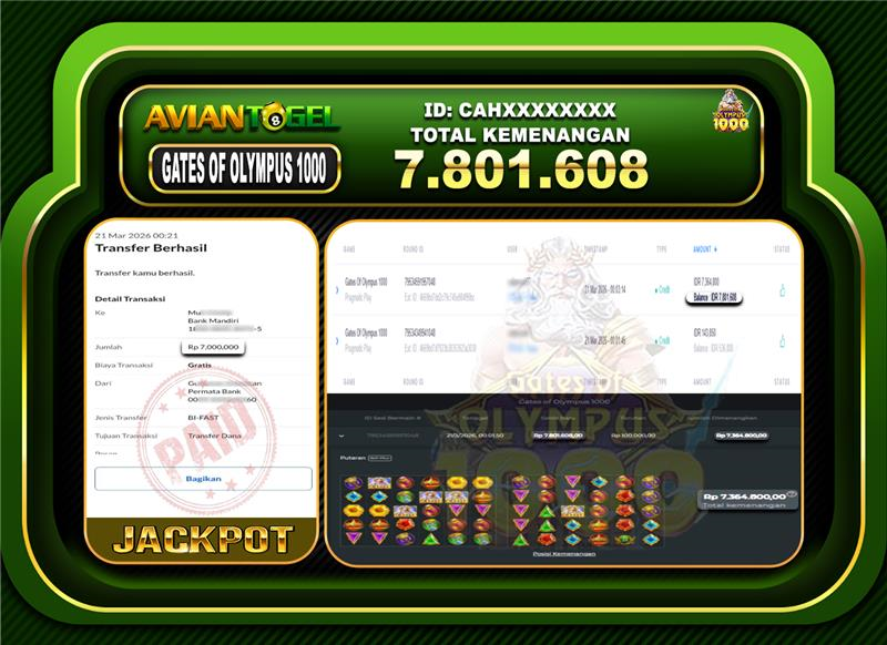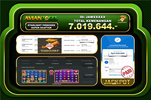 Beberapa situs togel online hanya menjanjikan tanpa ada bukti yang jelas, tapi di AVIANTOGEL semua pasti terbukti dan jelas, BUKTI JACKPOT TOTO TOGEL ONLINE, SLOT ONLINE, LIVE CASINO secara nyata. Melalui kemenangan member setiap hari nya, jackpot besar togel online 2D–3D–4D maupun jackpot besar slot gacor, hingga bukti transaksi kemenangan yang benar-benar masuk ke saldo member.