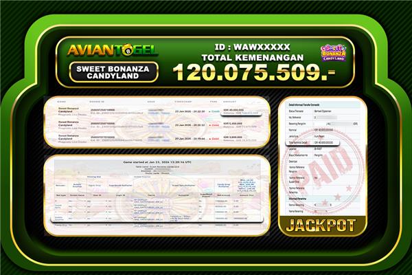 BUKTI PEMBAYARAN SLOT AVIANTOGEL Rp.120,075,509,- GAME : SLOT SWEET BONANZA CANDYLAND