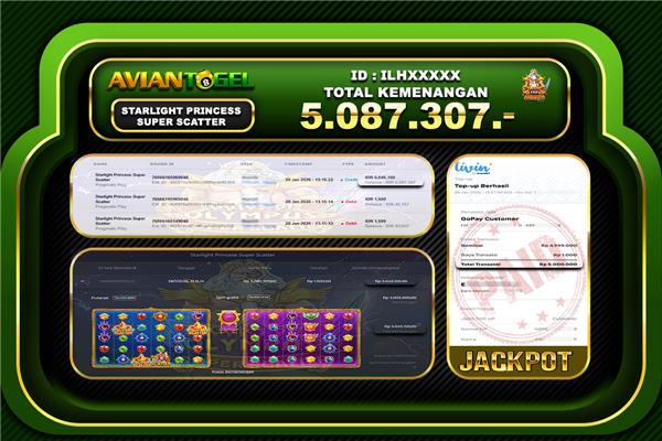 BUKTI PEMBAYARAN SLOT AVIANTOGEL Rp.5,087,307,- GAME : SLOT STARLIGHT PRINCESS SUPER SCATTER