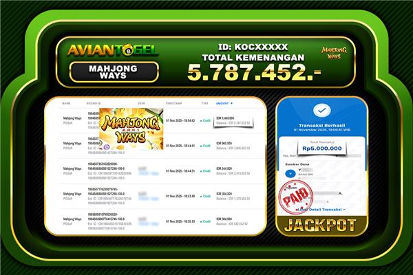 BUKTI PEMBAYARAN SLOT AVIANTOGEL Rp.5,787,452,- GAME : SLOT MAHJONG WAYS