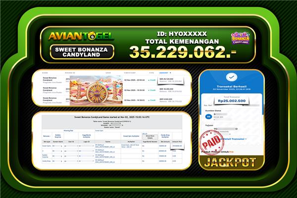 BUKTI PEMBAYARAN SLOT AVIANTOGEL Rp.35,229,062,- GAME : SLOT SWEET BONANZA CANDYLAND