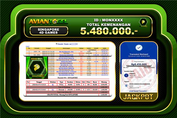 BUKTI PEMBAYARAN AVIANTOGEL Rp.5,480,000,- GAME : TOGEL SINGAPORE 4D GAMES